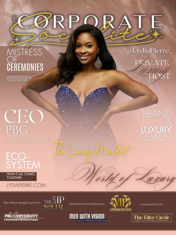 Lydia's Personal Brand The Corporate Socialite® is all about bridging the gap between corporate achievement and a socially conscious lifestyle by creating a space where elite & extraordinary professionals are free to be and experience their true self, build their confidence and influence, become happier, authentic, and relatable.